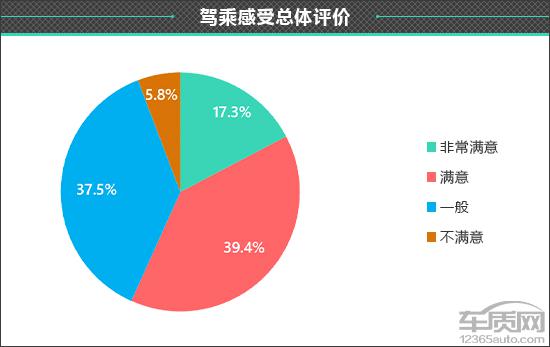 盡管部分車主有抱怨,但大部分車主對(duì)其質(zhì)量可靠性評(píng)價(jià)較客觀,17.3%的車主“非常滿意”,42.3%的車主“滿意”,33.7%的車主評(píng)價(jià)“一般”,6.7%的車主“不滿意”。