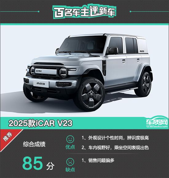 iCAR V23是一款復(fù)古風(fēng)格的純電動(dòng)SUV車型,其方方正正的外觀造型是最大賣點(diǎn),硬朗前衛(wèi)又帶點(diǎn)“呆萌”,十分吸睛。當(dāng)下消費(fèi)者購(gòu)車需求日益多元化,市場(chǎng)需要更多個(gè)性化產(chǎn)品,所以iCAR V23備受關(guān)注也在情理之中。據(jù)參與本期“百名車主評(píng)新車”調(diào)查的車主反饋,2025款iCAR V23在外觀設(shè)計(jì)、車內(nèi)視野和乘坐空間等方面獲好評(píng),但也有部分消費(fèi)者反映其銷售問(wèn)題較多。