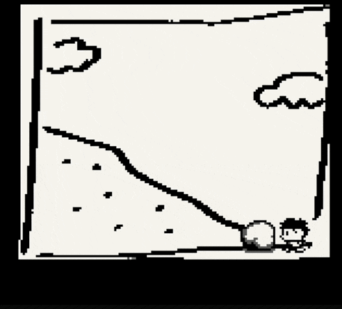 他的游戲和普通游戲不同,充斥著“反游戲”元素,荒誕、無意義、循環(huán)。很多人玩到一半會覺得乏味而放棄。比如《翻山》系列,玩家像西西弗斯一樣和石頭無休止較勁,第一部推到山頂還有山,第三部山頂推下的石頭會出現(xiàn)在另一座山山頂,無限循環(huán),就像生活看似豐富,實則循環(huán)往復(fù)。周一忱說很多人玩他的作品,開始笑著,后來表情嚴(yán)肅困惑,最后釋然離開,這或許就是認(rèn)清生活真相后依舊熱愛生活的英雄主義。