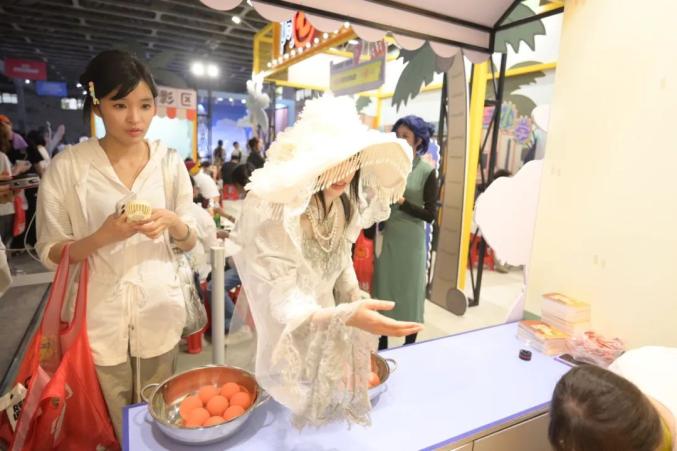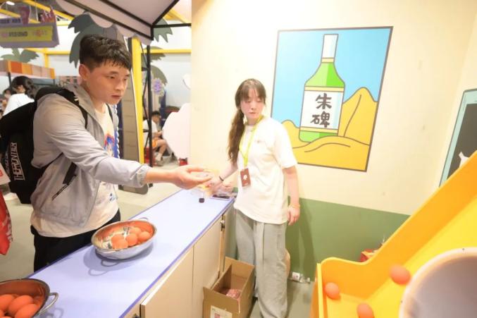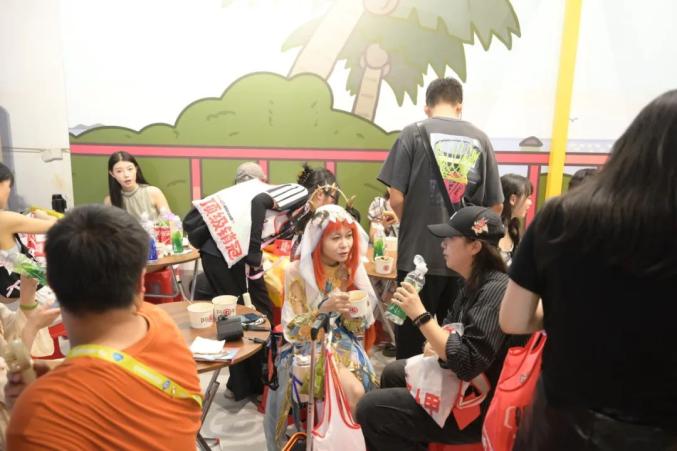 展區(qū)背景墻更以《原神》《崩壞:星穹鐵道》角色為原型創(chuàng)作了“二次元牛雜娘”插畫,吸引了大量年輕玩家拍照互動。