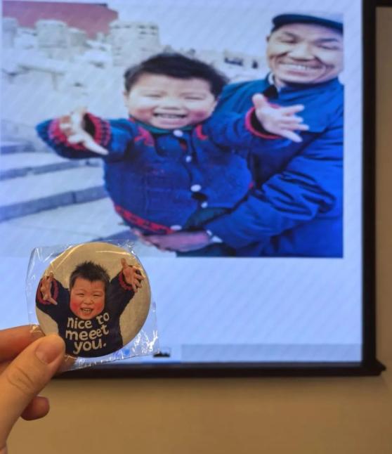 邁克·埃默里給大家分發(fā)了徽章,徽章上是他1980年拍攝的一個(gè)“求抱抱”小男孩,上面寫著“nice to meet you”(很高興遇見(jiàn)你)。他稱,當(dāng)年的這些孩子是最早伴隨改革開(kāi)放成長(zhǎng)起來(lái)的,其中很多人參與了中國(guó)的建設(shè)。他希望能找到當(dāng)年自己拍攝過(guò)的孩子們,聽(tīng)聽(tīng)他們的故事。