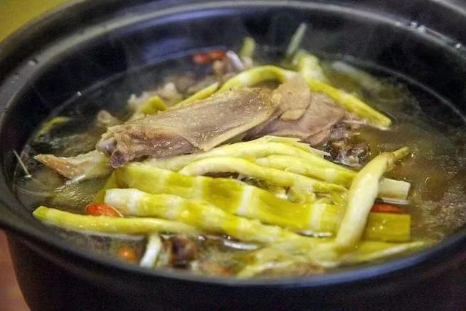 筍干老鴨煲:筍干吸飽山林精華,老麻鴨風(fēng)味濃縮,砂鍋是它們?nèi)诤系娜萜?。冷水慢燉,?shù)小時(shí)文火燉煮。筍香鴨醇絲絲交融,湯色金黃濃醇。鴨肉酥爛脫骨,筍干吸飽湯汁,軟糯鮮香。 一碗下肚,是時(shí)間慢燉出的、飽含山野與家禽精華的滋補(bǔ)至味。