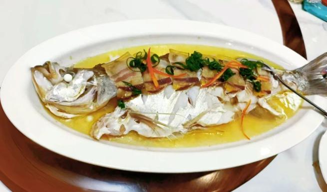 蔥油鱖魚:鱖魚是魚中貴族,蕭山人懂得取其豐腴肥美,清蒸得恰到好處。滾燙蔥油“滋啦”淋下,焦香蔥段激發(fā)出魚脂的醇厚。魚肉細(xì)膩如脂,浸潤著蔥香豉鮮,每一口都充滿江河的濃墨重彩。