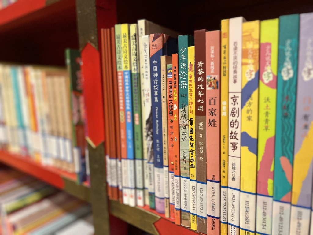 書架上精選的書籍,都與傳統(tǒng)文化相關(guān)。
