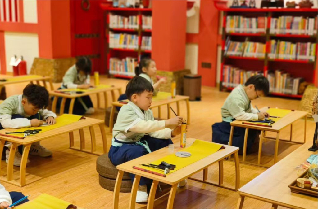 曉英表示:“我們要提供的不是單一團隊的‘小圈子’服務(wù),而是全齡段、全時段、全域段的文化服務(wù)?!睂W(xué)館每天從早9點開放至晚7點半,為不同年齡段的市民亮起燈光:放學(xué)后的孩子在矮書架前翻看國學(xué)繪本,樓宇白領(lǐng)利用午休時間參加宋代點茶體驗,社區(qū)舞蹈隊成員身著漢服排練《詩經(jīng)》舞蹈,周末親子家庭則圍坐在一起,參加雙語繪本課,共度美好時光。