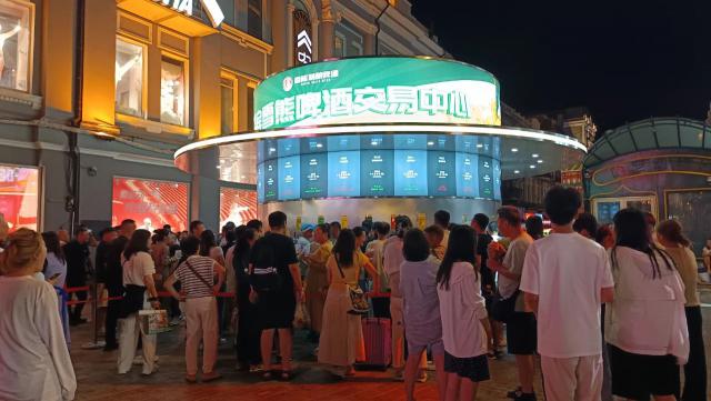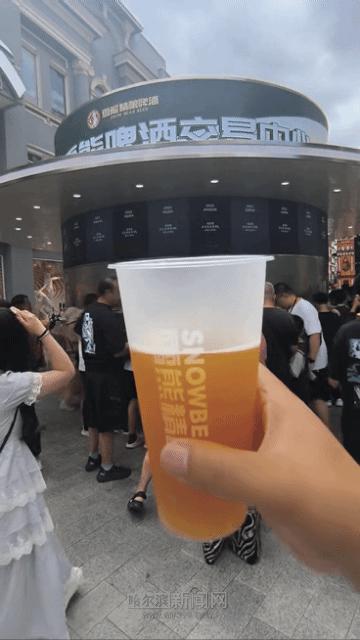 記者在現(xiàn)場看到,品嘗啤酒的市民和游客排起了長隊。只要掃碼支付13.9元,就能拿到一個杯子,進入服務區(qū)隨意品嘗哈爾濱老啤酒、德式啤酒、比利時小麥、百香果啤酒等十余種口味的啤酒,還有原味格瓦斯等飲品。