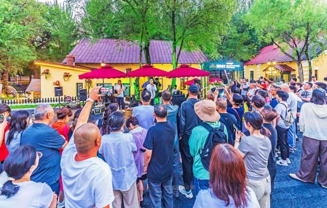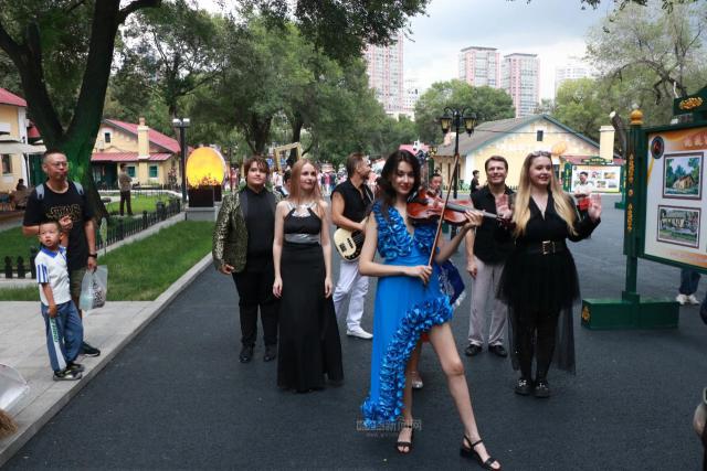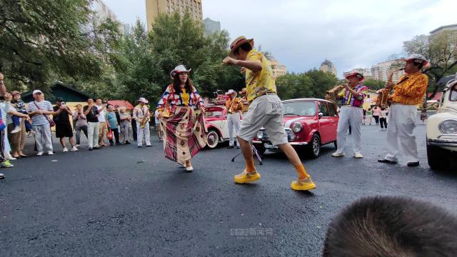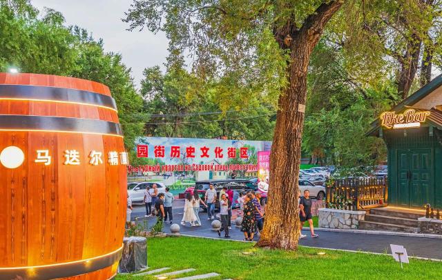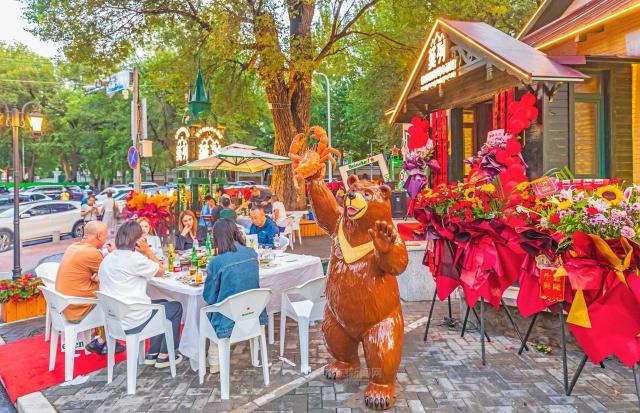 走進(jìn)街區(qū),這里已然成為冰城的熱門打卡地。市民和游客們在這里悠然漫步,在復(fù)古老爺車前合影留念,在童話花園中流連忘返,孩子們圍繞著巨型玫瑰熊嬉笑玩耍。秋林洋行露臺上傳來的悠揚旋律與馬迭爾啤酒桶舞臺上的文藝演出相互映襯,“老街樂隊”的巡游演奏更是贏得了陣陣喝彩。藝術(shù)寫生區(qū)和“黃房子”攝影展前人潮涌動,一位繪畫愛好者感慨道:“這里既能讓人領(lǐng)略到老建筑的韻味,又能讓人感受到新時代的氣息,是創(chuàng)作的絕佳之地。”