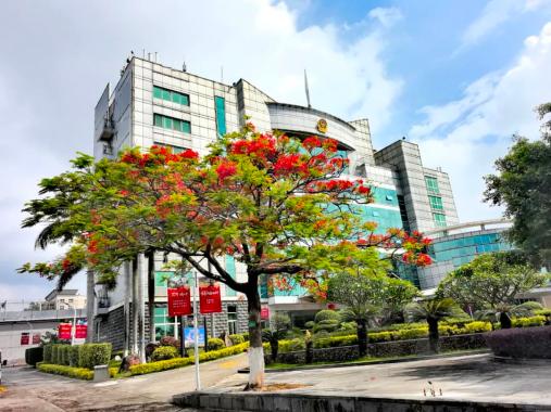 欣賞一張鳳凰花的絕美照片,在行政樓前停下腳步,只見(jiàn)那一團(tuán)團(tuán)盛開(kāi)的鳳凰花如烈火般絢爛,鮮紅的花朵映襯著警徽,暈染出一片熱烈的氛圍。
