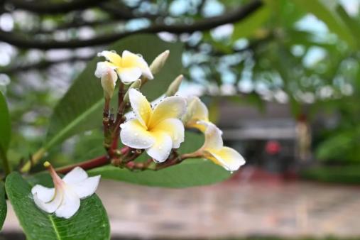 拾起一朵雞蛋花的雅致韻味,在步道兩側(cè)悠然眺望,那花兒仿佛暈染著澄澈的夢(mèng),在葉片間輕聲吟唱著靈動(dòng)的篇章,低語(yǔ)訴說(shuō)著素雅的夏日情懷。