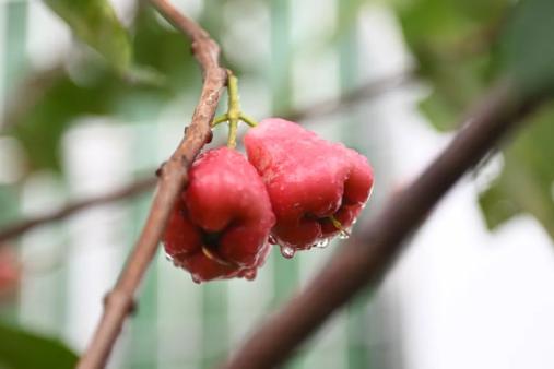 輕撫一次粉紅蓮霧的濕潤(rùn),漫步在籃球場(chǎng)圍欄之畔,只見(jiàn)枝梢輕輕擺動(dòng),顆顆果實(shí)玲瓏剔透,艷艷的緋紅,恰似云霞棲息在碧綠的樹(shù)上。