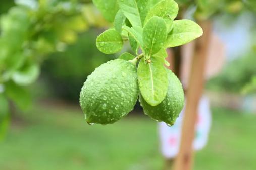 尋覓一顆香水檸檬的蹤跡,在足球場(chǎng)的圍欄邊,只見(jiàn)一顆顆青果宛如碧玉懸掛在枝頭,清新的氣息在果皮上流轉(zhuǎn)。