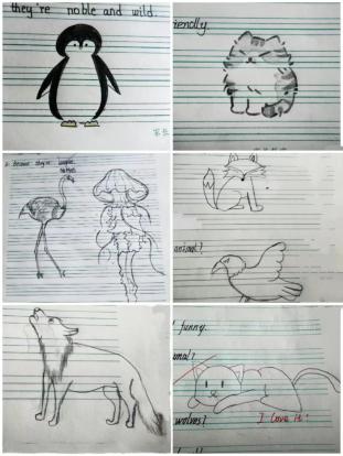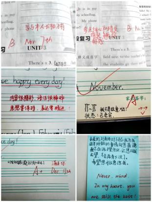 作業(yè)本是我和孩子們的“對(duì)話簿”,我在上面寫(xiě)鼓勵(lì)的話,比如“書(shū)寫(xiě)與本人長(zhǎng)相不符”“最近進(jìn)步很大,看著人都帥了很多”等。孩子們的字跡里也藏著動(dòng)人的話。一直在進(jìn)步的小A 寫(xiě):“老師,你最好了。所以能不能給我打一個(gè)A+”;小B 因抄作業(yè)道歉:“老師,我知道錯(cuò)了,保證是最后一次!”小C 說(shuō):“老師,你要是猜不出我寫(xiě)的是哪個(gè)城市,你就給我一顆糖?!弊钭屛腋袆?dòng)的是作文《My favourite Subject》里的話:“我喜歡英語(yǔ)課,因?yàn)槔蠋煵粌H讓我們聽(tīng)英文歌、看電影,還會(huì)講外面的世界。她說(shuō),沙漠外有大海,我想去看看?!?/p>