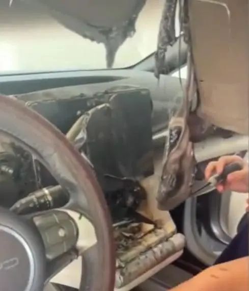 事發(fā)當(dāng)天天氣炎熱,王女士在辦公區(qū)時(shí),通過(guò)車(chē)子配套的APP遠(yuǎn)程啟動(dòng)了車(chē)內(nèi)空調(diào)。當(dāng)她走到離車(chē)僅一米遠(yuǎn)時(shí),竟看到車(chē)子在冒煙,車(chē)內(nèi)還有明火,前擋風(fēng)玻璃已經(jīng)碎裂。王女士立即報(bào)警求助,消防員及時(shí)趕到將火撲滅。