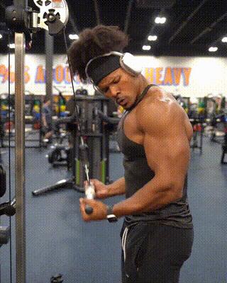 注意事項(xiàng):上臂必須鎖死不動(dòng)!這是關(guān)鍵,一亂動(dòng)就練不到三頭肌了。下放要慢,控制住,感覺三頭肌被拉長。重量一定要輕!這個(gè)動(dòng)作很容易拉傷肘關(guān)節(jié),寧輕勿重。如果感覺手腕或肘關(guān)節(jié)不舒服,立刻停止,或者換啞鈴做單臂的。