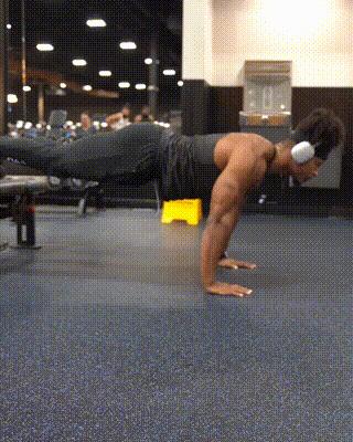 注意事項(xiàng):身體全程保持筆直一條線!屁股別撅起來,腰別塌下去。下落要慢,感受上胸拉伸;推起要快,用爆發(fā)力。腳架的高度量力而行,別一上來就弄太高,容易受傷。