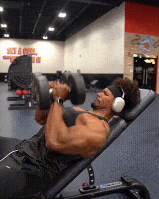 注意事項(xiàng):凳子角度別太陡,否則肩膀壓力太大。杠鈴下放的位置要比平板臥推高,更靠近鎖骨。同樣要注意腰背貼實(shí),別用腰借力。
