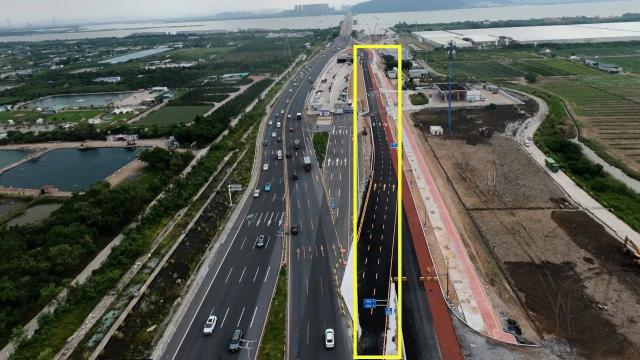 保留西往東方向燈籠路口左轉(zhuǎn)信號燈及左轉(zhuǎn)車道,取消右轉(zhuǎn)進(jìn)入西江管理局車道,直行車道將由4車道漸變?yōu)?車道,進(jìn)入新建輔道。