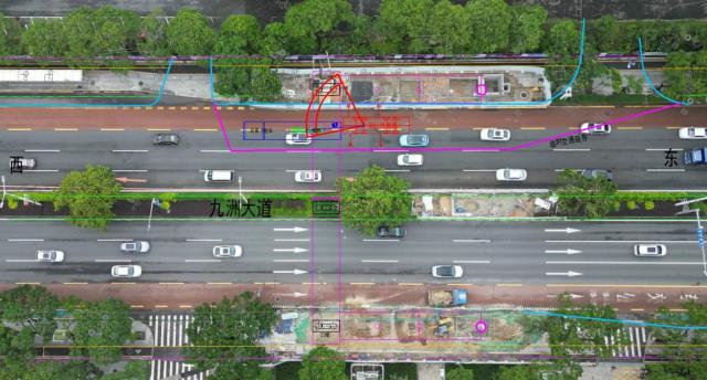 吊裝期間,在九洲大道交建業(yè)三路路口東往西方向臨時占用2條車道,保留2條車道通行。