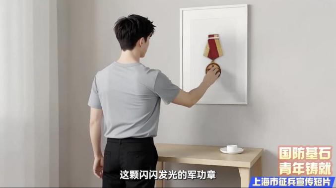 年輕的眼眸在軍功章前變得無比堅(jiān)定。