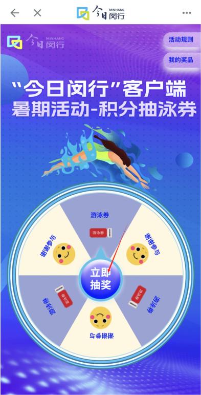 全民健身日免費(fèi)場(chǎng)沒約上,怪自己手速不夠快?別遺憾啦!“今日閔行”App積分抽泳券活動(dòng)最后一波火熱來(lái)襲,用積分就能抽獎(jiǎng),讓你0元暢游!