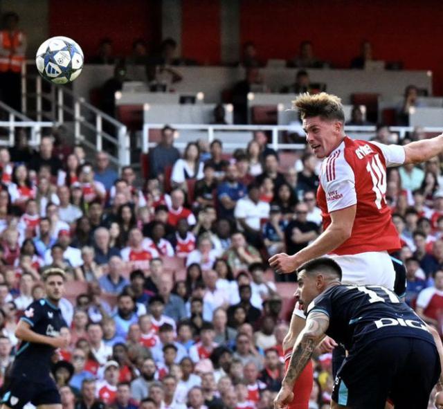 第35分鐘,場上僵局被打破。兩位新援配合默契,蘇比門迪精妙傳中,約克雷斯在禁區(qū)內(nèi)甩頭攻門,幫助球隊1 - 0領先。這位轉(zhuǎn)會費總價高達7600萬歐元的瑞典中鋒,也收獲了加盟阿森納后的首粒進球。