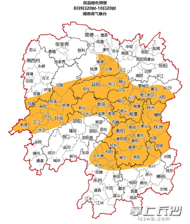 湖南省氣象臺(tái)9日16時(shí)發(fā)布高溫橙色預(yù)警,預(yù)計(jì)10日白天,長(zhǎng)沙、株洲、湘潭、衡陽(yáng)、常德東南部、益陽(yáng)南部、郴州北部、永州北部、懷化、婁底等地將迎來(lái)37℃以上的高溫天氣,局部地區(qū)氣溫將飆升至39℃以上。