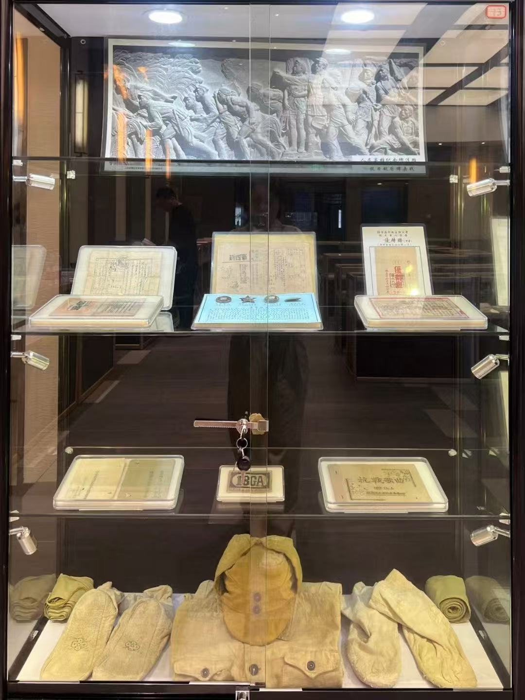 郭乃興希望通過紅色藏品舉辦展覽,讓更多人了解先輩事跡。機(jī)會來了,環(huán)球港邀請他舉辦“抗戰(zhàn)遺存收藏展”。500 平方米展區(qū)、1000 多件文獻(xiàn)實物、四個細(xì)分專題,原本 1 個月的展覽延長至 3 個月。他說:“收藏不是把東西藏起來,而是要讓公眾看到,讓他們知道新中國成立不易和英雄們的付出?!?/p>