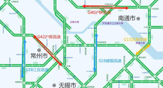 ( 一 )高速公路:G2京滬高速公路、G42滬蓉高速公路、S19通錫高速公路、G15沈海高速公路、G1522常臺(tái)高速公路、S17蘇臺(tái)高速公路、S35阜溧高速公路、S39江宜高速公路、G40滬陜高速公路等。