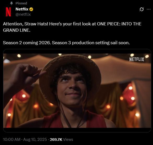 真人版《海賊王》第二季預(yù)計于2026年開播,與此同時,網(wǎng)飛還宣布續(xù)訂了第三季。