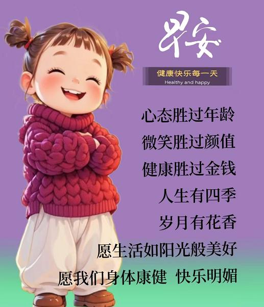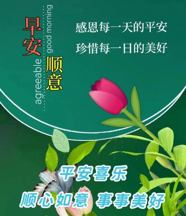一聲“早安”,飽含著深深的牽掛,一句問候,蘊藏著滿滿的祝福。每日的問候,并非只是一種形式,而是我心中對你的那份牽掛與在意。懂得感恩,才能擁有更多美好,學會珍惜,幸福才會長久相伴!早上好!愿你每日都能開心快樂!