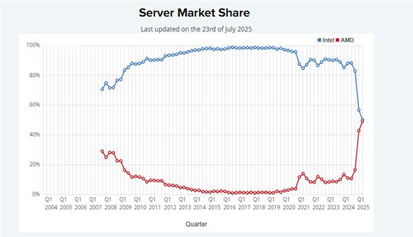 歷史性突破!AMD服務(wù)器CPU市占率首達(dá)50%