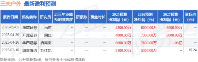 華源證券股份有限公司的丁一近期對三夫戶外展開研究,并發(fā)布了研究報(bào)告《具備品牌資源優(yōu)勢,行業(yè)發(fā)展有望增厚公司業(yè)績》,首次覆蓋三夫戶外并給予買入評級。