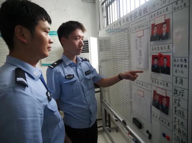 青年民警陳斌、李世龍討論本周考核看板排名。該看板整合執(zhí)勤值班、監(jiān)組管理、條線(xiàn)履職、績(jī)優(yōu)加分四項(xiàng)內(nèi)容,公示扣分明細(xì)與問(wèn)題點(diǎn),督促民警整改。打分依據(jù)民警實(shí)際表現(xiàn),“每周之星”成為榜樣。