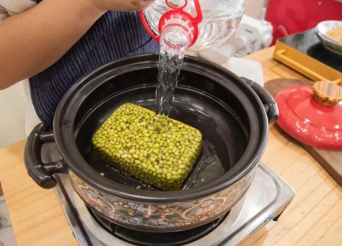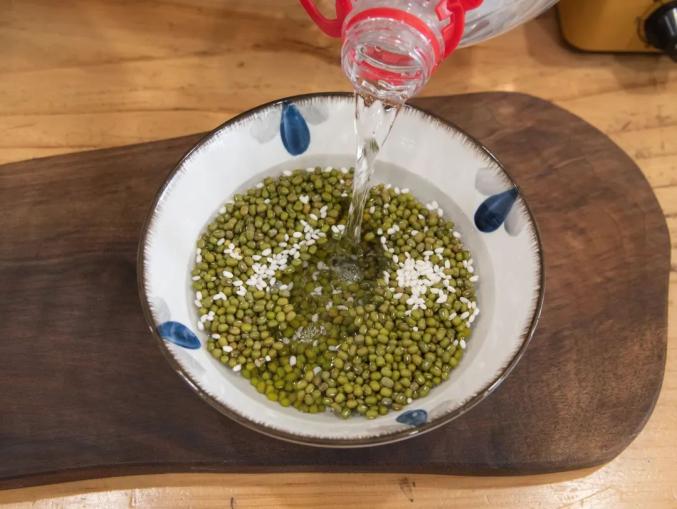 1. 將綠豆和糯米加水浸泡2小時后,放冰箱冷凍2小時。