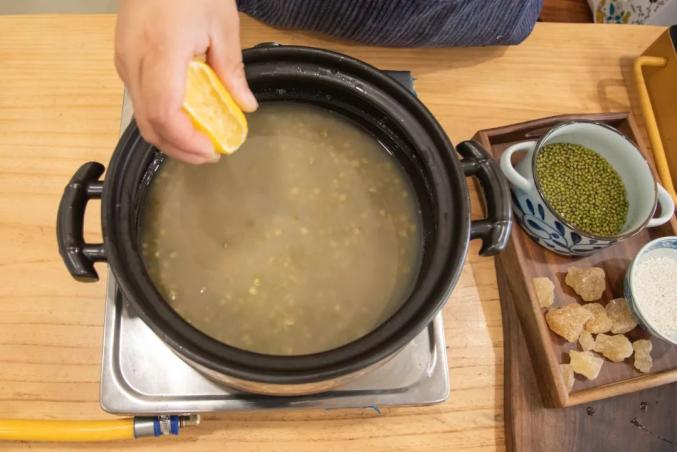 4. 放入冰糖,繼續(xù)燉煮,直至綠豆軟爛。