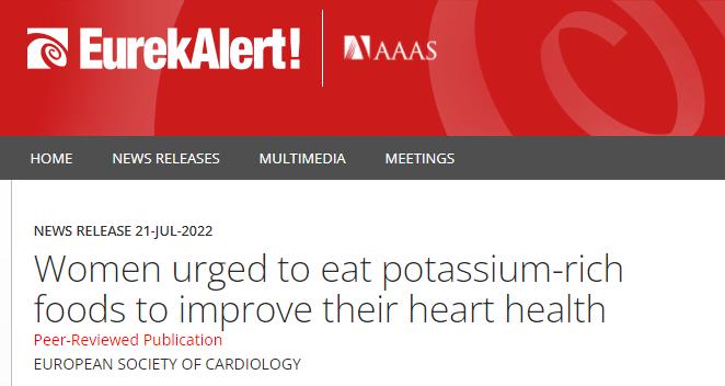 ③Women urged to eat potassium-rich foods to improve their heart health. ESC. 22 Jul 2022.