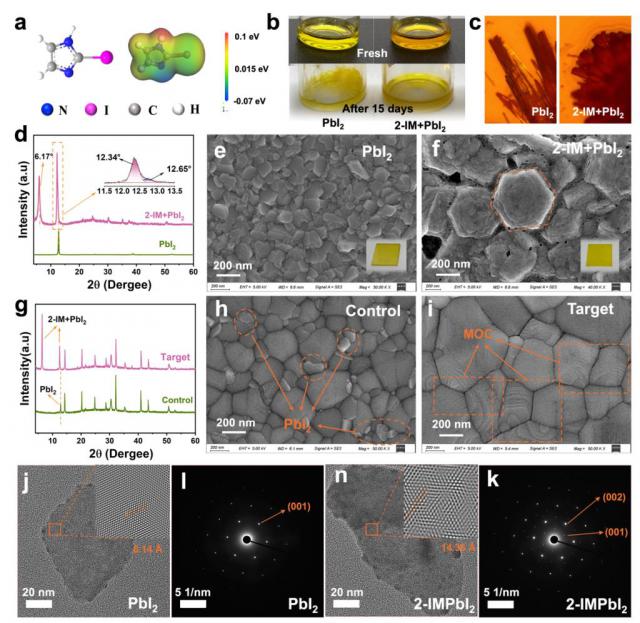 針對這一挑戰(zhàn),昆明理工大學(xué)研究團隊提出了創(chuàng)新性的解決辦法。他們在鈣鈦礦前驅(qū)液中引入一種含碘的有機分子,讓其與殘留碘化鉛進行原位反應(yīng),形成具有六邊形層狀結(jié)構(gòu)的穩(wěn)定化合物。這種化合物不僅能有效鈍化晶界缺陷,還能抑制離子遷移和相分離,極大地提高了電池的電荷傳輸能力。