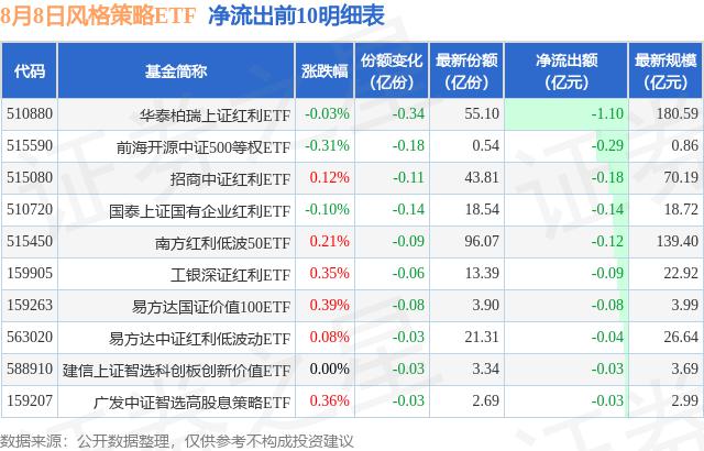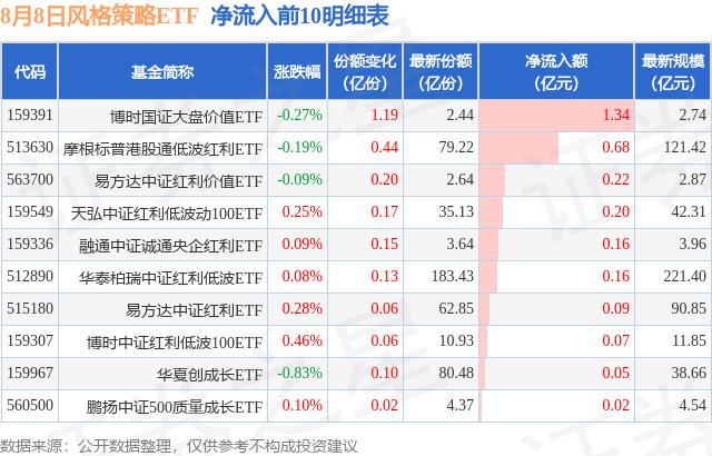 8月8日風(fēng)格策略ETF資金流向情況