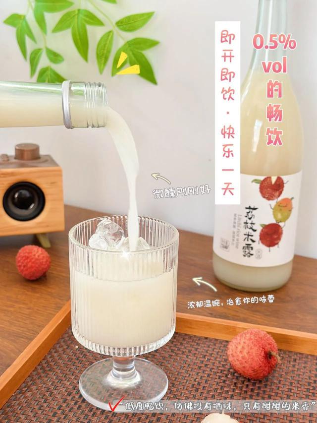 冰鎮(zhèn)后抿一口,舌尖先觸到荔枝的清甜,接著米酒的醇厚從喉嚨漫上來,好喝到舔杯!