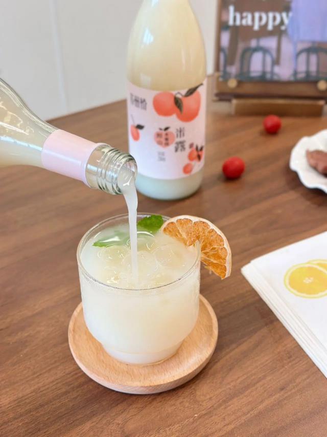 冰鎮(zhèn)后喝一口,就像在吃剛從陽山摘的水蜜桃,果肉的甜混著米酒的潤,>0.5度的微醺剛好讓臉頰泛起紅暈,連打個嗝都是水果香。