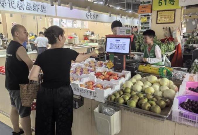 “阿姨您好,今天的桃子又大又甜又新鮮,要不要來幾個呀?”在嘉陵路菜場內(nèi)的一個水果攤前,兩位“小小掌柜”正賣力地向一位顧客阿姨推銷著。那稚嫩的童聲讓阿姨停下了腳步,她一邊詢問價格,一邊和“小小掌柜”們聊了起來。當(dāng)?shù)弥@是匯成街區(qū)青少年暑期社會實(shí)踐活動后,阿姨果斷下單買了幾個桃子,這也促成了“小小掌柜”們的第一單生意。聽到付款到賬的語音提示,小掌柜們眼中閃爍著光芒,興奮得手舞足蹈。