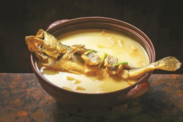 舊時,寧波大戶人家還有一道名為“三黃湯”的大菜,它是用新鮮野生大黃魚、新風(fēng)黃魚鲞和黃魚膠制作的魚肚這“三黃”烹制而成,食材之名貴可想而知。