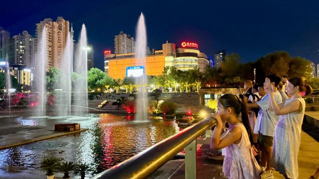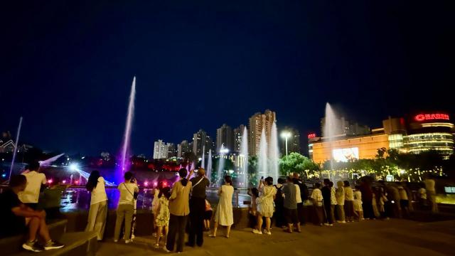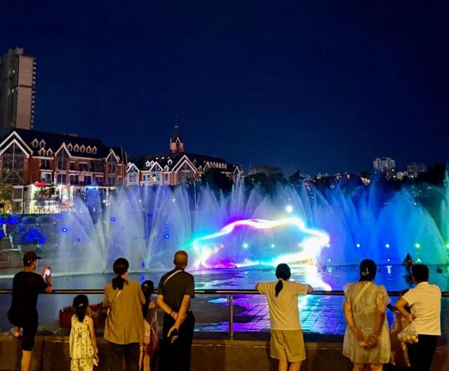 噴泉秀現(xiàn)場,歡聲笑語和驚嘆聲此起彼伏。