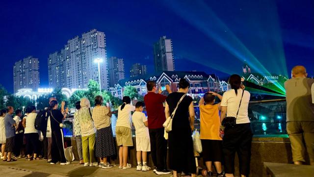 音樂漸停,噴泉秀落幕。許多觀眾久久不愿離去,沉浸在這場視覺盛宴中。一位來自廣州的游客興奮地告訴記者,他從這場市民生活儀式中感受到了哈爾濱的獨特之美。白天旅行體驗,夜晚與市民共賞噴泉秀,是一次有趣的經(jīng)歷?,F(xiàn)場根據(jù)展現(xiàn)哈爾濱主題的歌曲做了創(chuàng)意視覺設計,讓他真切體會到城市魅力和人們的活力。