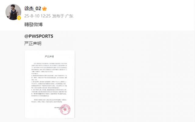 隨后,徐杰轉(zhuǎn)發(fā)了該微博對此事進(jìn)行了回應(yīng)。