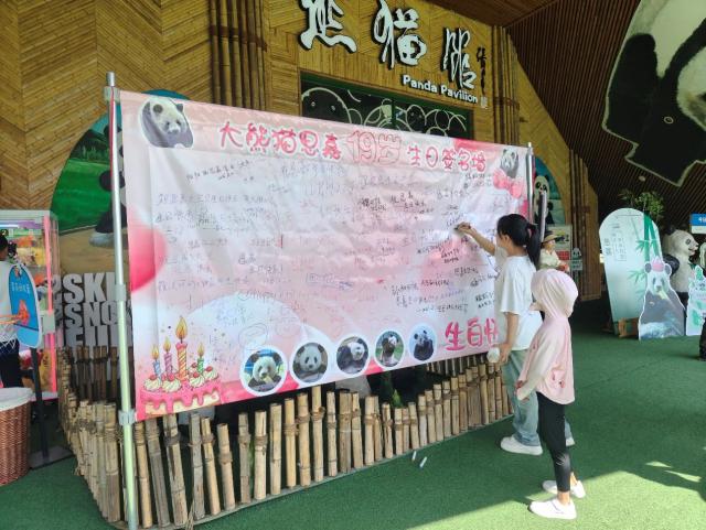 熊貓館為此次盛會精心策劃了豐富多樣的互動活動。游客們領(lǐng)取專屬的“思嘉的旅行護(hù)照”,饒有興致地在園區(qū)內(nèi)八個特色點位打卡集章,然后兌換成飽含心意的明信片,寫下對思嘉的美好祝福。館內(nèi)特意設(shè)置的祝福簽名墻,很快就被游客們溫暖的留言填滿。
