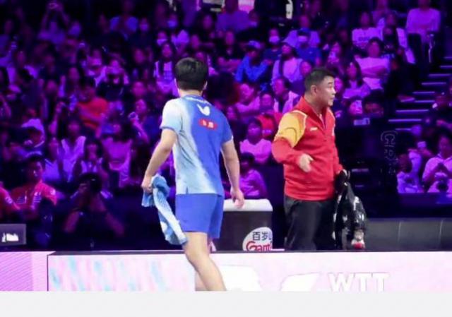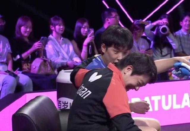 贏球后的張本智和異常激動(dòng),在球場(chǎng)內(nèi)進(jìn)行了長(zhǎng)達(dá)1分鐘的慶祝。此時(shí),向鵬只能在場(chǎng)內(nèi)等著與他握手,場(chǎng)外的王皓也著急地干等著。