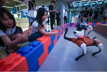 觀眾與機器狗互動。