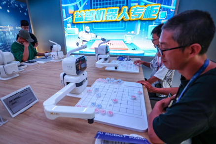 觀眾與機器人對弈。