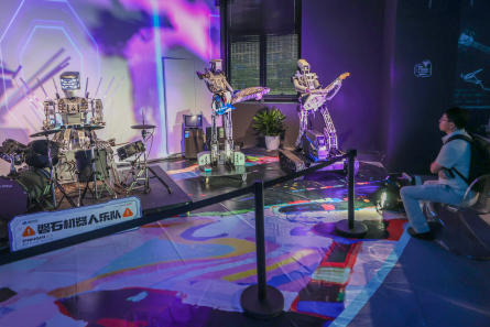 觀眾在機器人餐廳聆聽機器人音樂表演。